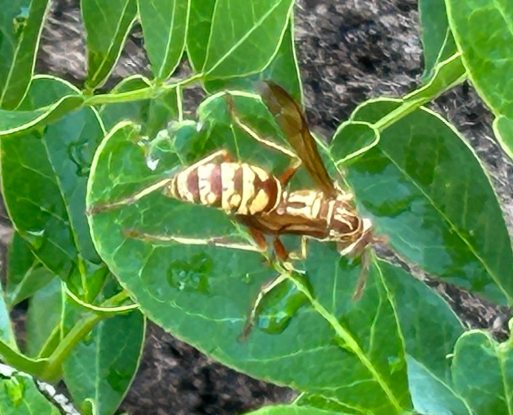 Wasps are like volunteer pest control officers for your garden, and they also serve as pollinators. Usually if you don’t mess with them, they won’t mess with you. As far as I know, I don’t react badly to wasp stings, so as much as possible I let them do their thing in my garden. They are likely to be eating other insects that I do not want, e.g., aphids.