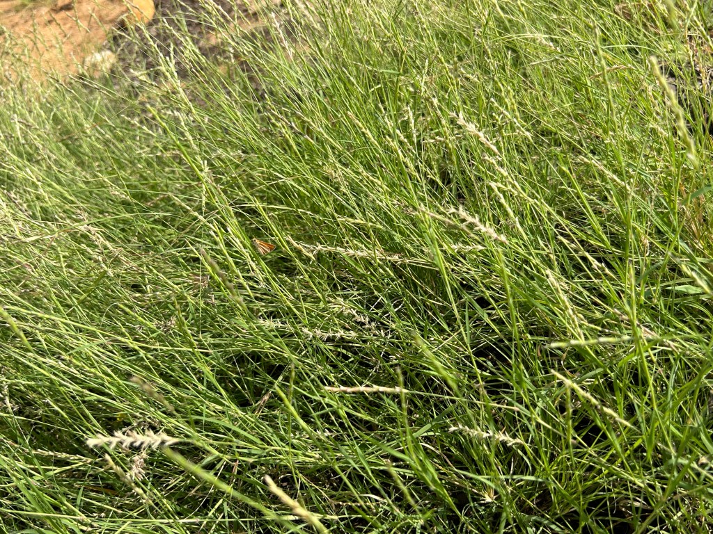 Since I first noticed a bee visiting the biggest clump of native grasses that I have so far, I have deduced that most of the bee activity in this region is from about dawn to 10am. I have seen — and heard! — as many as 20 bees visiting this small patch at one time.