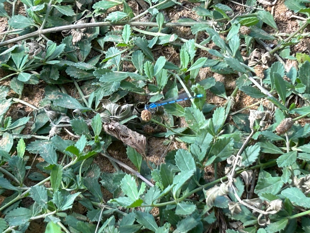 The app said Familiar Bluet (Enallagma civile), a damselfly. Here’s a cropped version of the photo. It’s not very good resolution, I’m afraid — these tiny mobile insects are hard to capture!