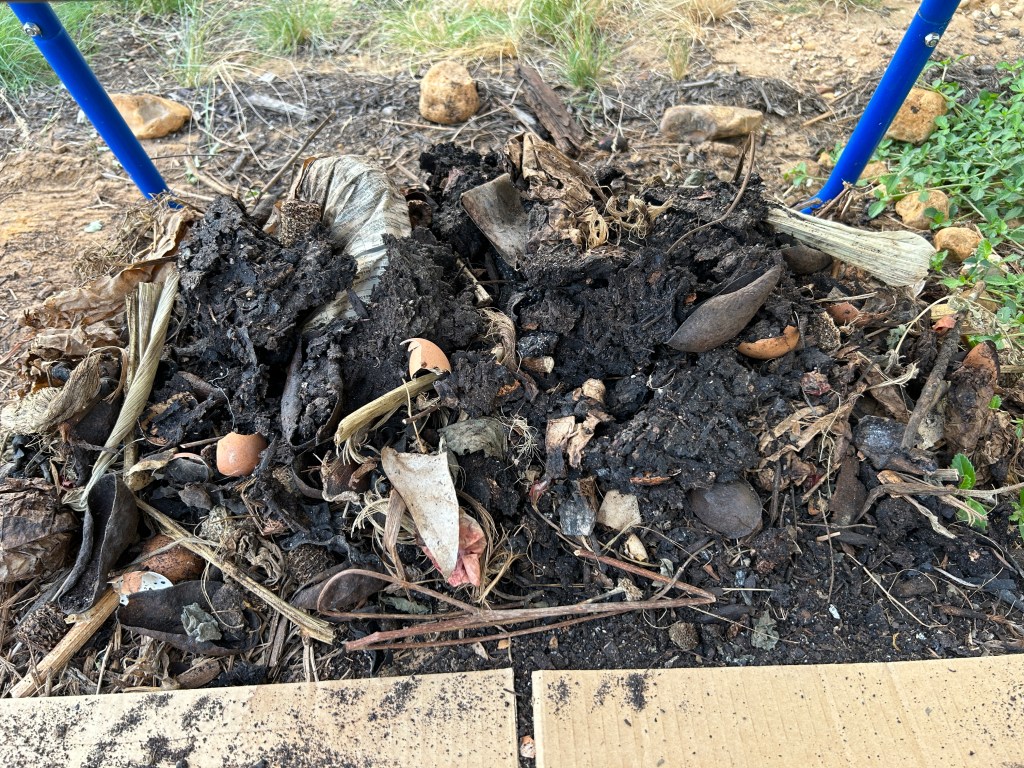 - Not wet enough? This is definitely a possibility since we have had (and are still in) an extended drought, and it wasn’t until recently that I even thought to water the compost. I will start to do that more.