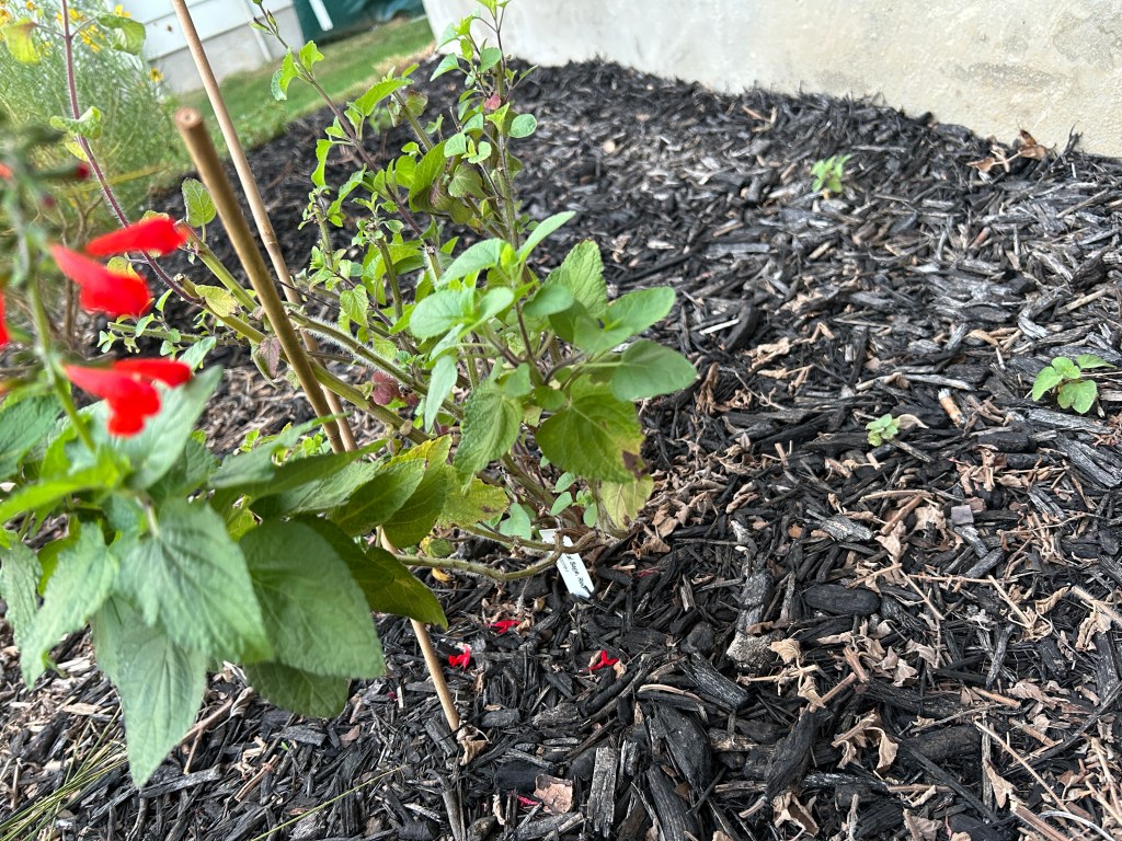 I planted two Scarlet Sage (Salvia coccinea) in front of the house this spring. Salvias are some of the easiest plants to grow and pollinators love them. Their season is long, and even through this summer’s drought, they thrived and even self-seeded.