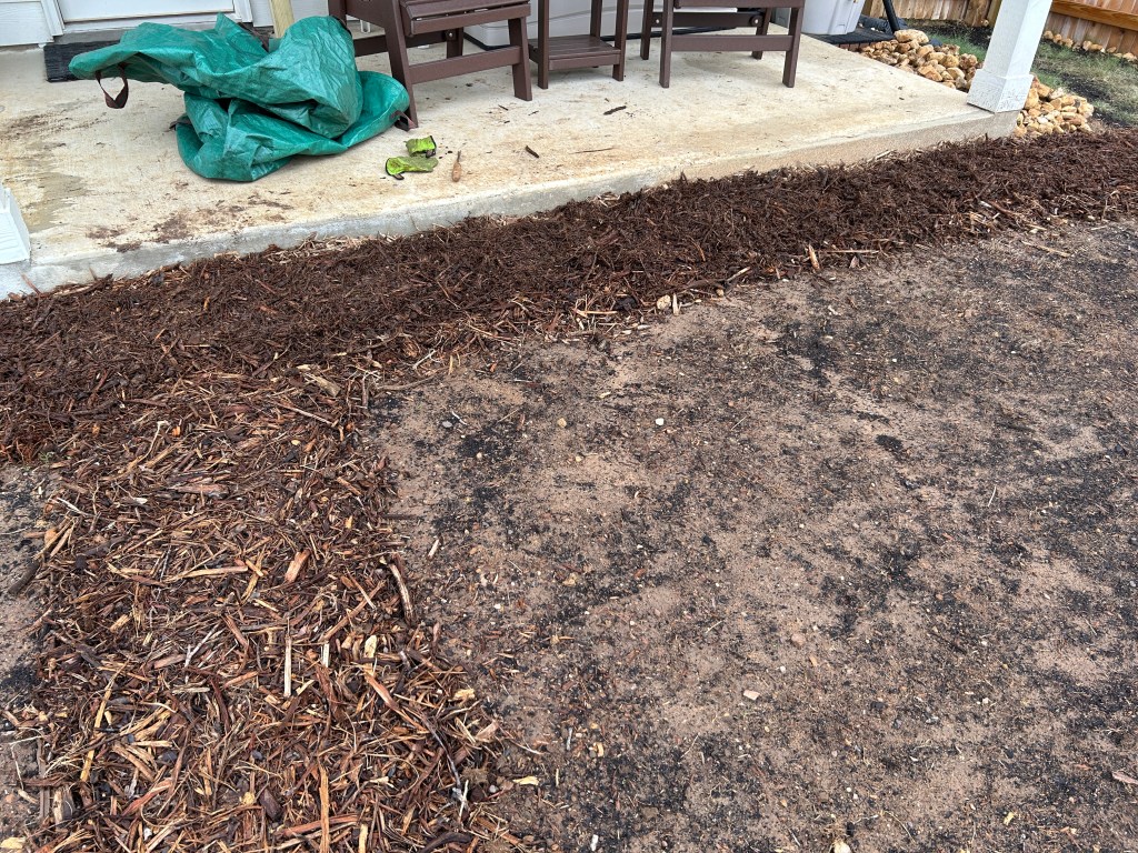 Here’s a place where I added more mulch today along the patio, and the path in the foreground has not been augmented yet. This will be an ongoing task until things get busy in spring.