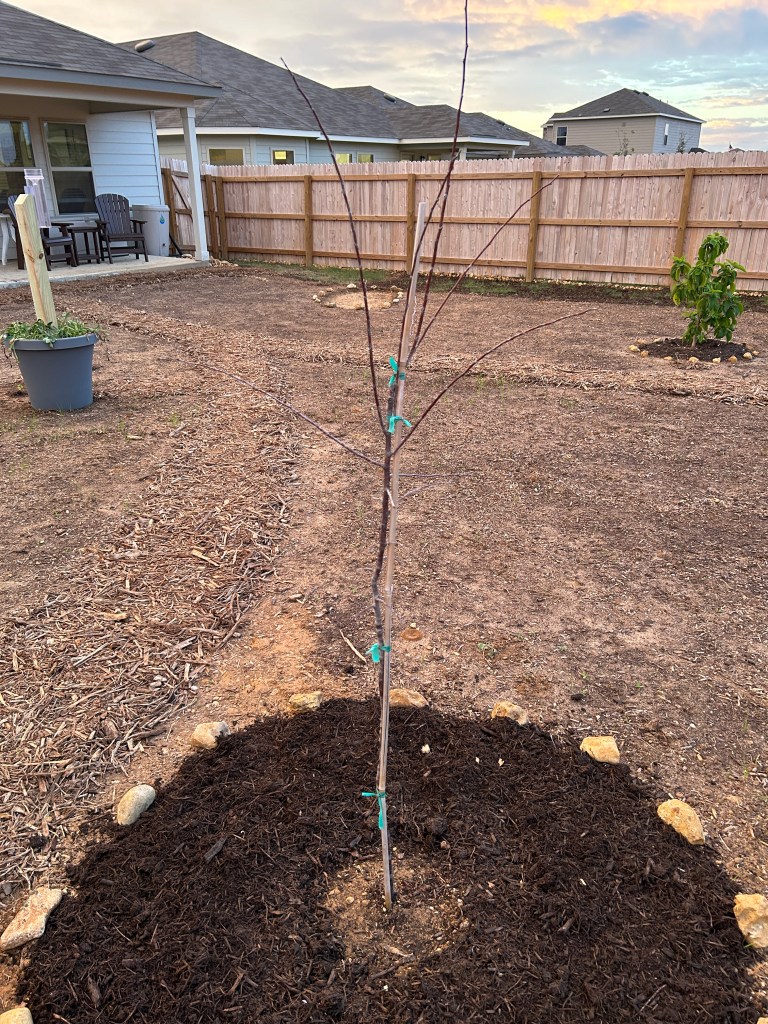 To round out my collection of four trees in the back yard I have planted a Mexican Plum (Prunus mexicana). It is an early blooming tree, and in fact the flowers appear before the leaves in the spring, so it is an important nectar source early in the year. And being deciduous, it’s a nice contrast to its evergreen garden-mates. In this photo, the Mexican Olive is in the background on the right.