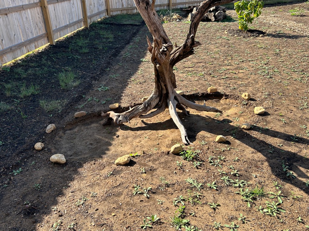 I am pleased with this. The swale seems to be in a good location and I think my next step will be to dig it deeper by a few inches to increase its capacity. Over time, I hope that as more plants become established in the garden, rain water will be more quickly be absorbed into the ground before it reaches the swale. I want to minimize water run-off from this lot, so having a swale to temporarily hold water should help with that. And on the occasions when we have sufficiently heavy rainfall that it does flow off the lot, I am confident that I am no longer losing soil in that process.