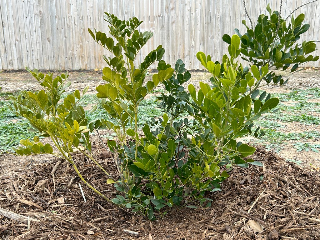My four trees in the back yard (Texas Mountain Laurel, Desert Willow, Mexican Plum, Mexican Olive) represent my greatest investment in terms of money spent to purchase them, and the time they will need to reach maturity. So I am watching them closely.
