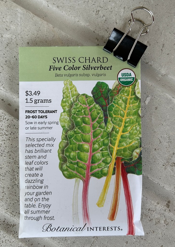 Where there are empty spaces between seedlings that are growing here, and along pathways for easy access, I have begun to plant seeds for Swiss Chard (Beta vulgaris subsp. vulgaris). This is a green leafy vegetable with colorful stems.