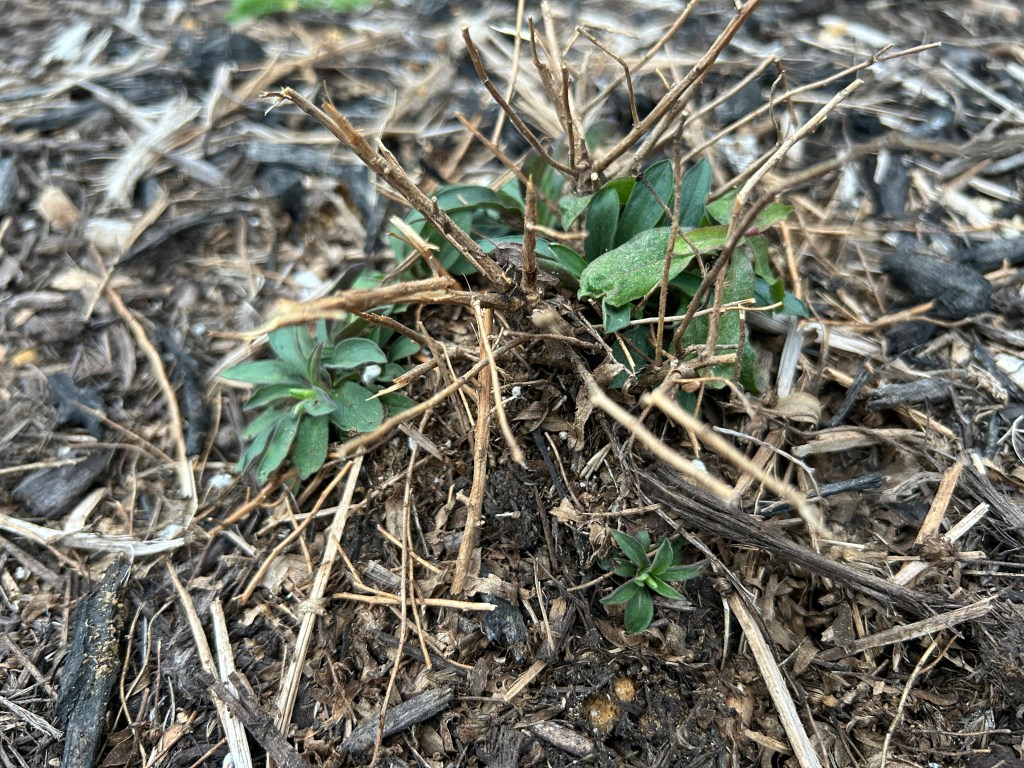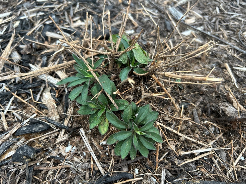 I introduced a new small Fall Aster (Symphyotrichum oblongifolium) plant last year in my front pollinator garden. Over the winter, it froze back, but I am already seeing vigorous growth from the ground. I just love seeing plants wake up in the spring!