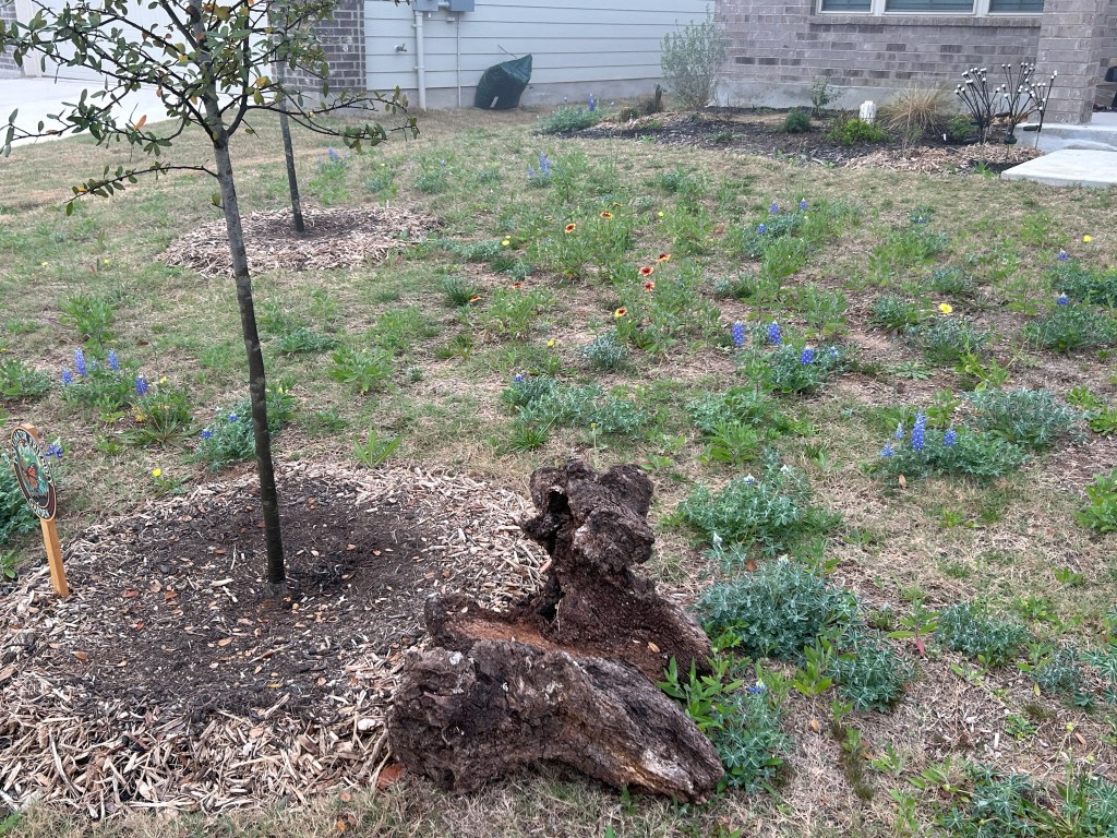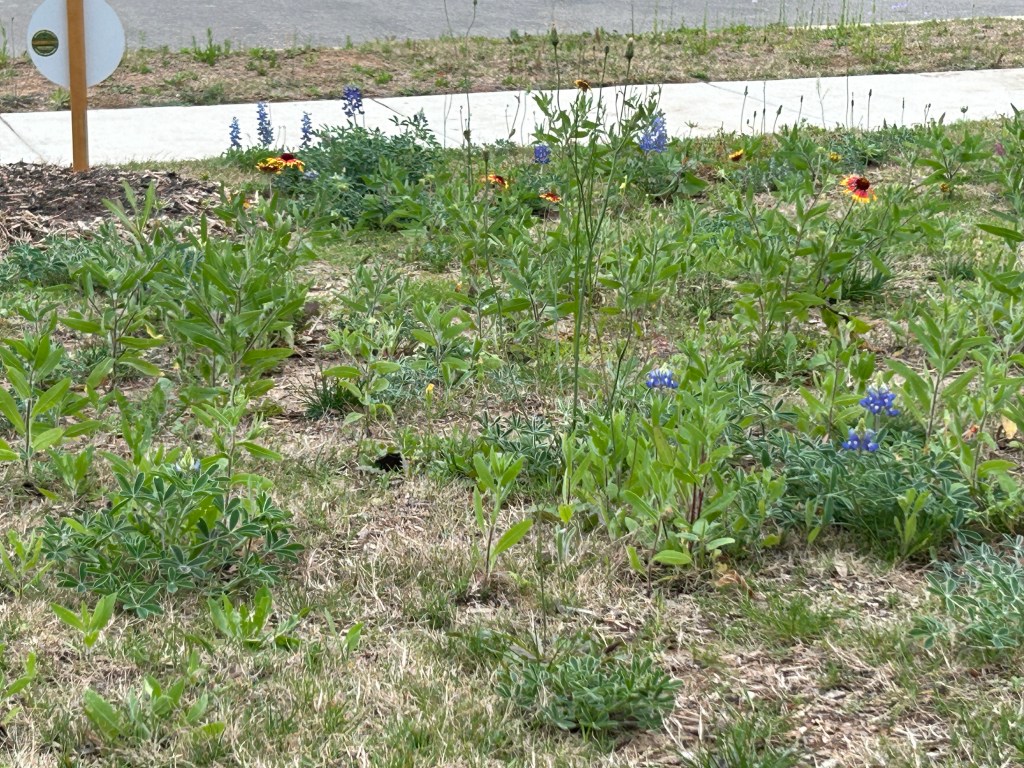 As expected, of my seeded plants, the Bluebonnets appeared first, soon followed by the Firewheels. I see leaves that might be Beebalm, but I haven’t been able to identify flowers yet (I would expect them to appear a few weeks later than the others).