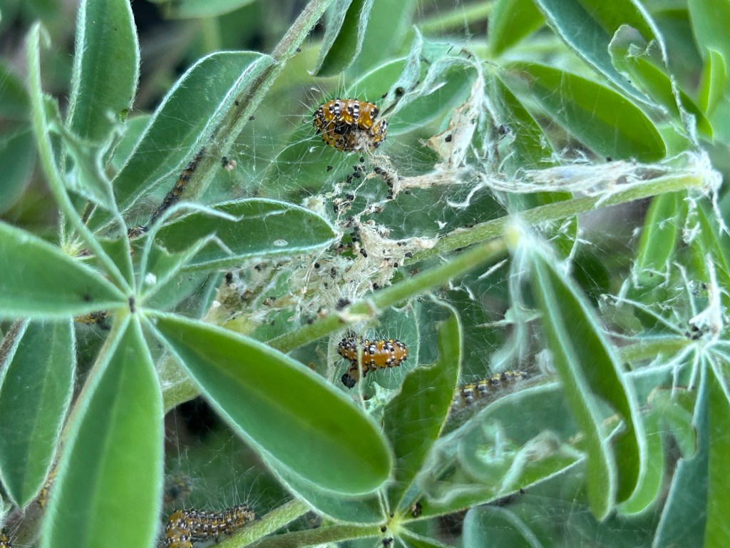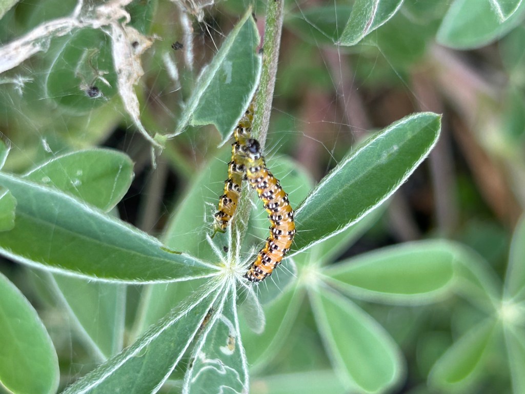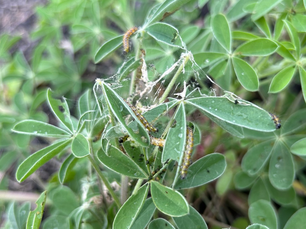 I have now (March 2024) spotted a cluster of the same kind of caterpillars munching on a Bluebonnet plant in front of the house. This time my strategy is different and I will watch but not interfere. The caterpillars may cause some leaf damage but they are unlikely to kill the plants completely, and even if they did, I have dozens of Bluebonnet plants here.