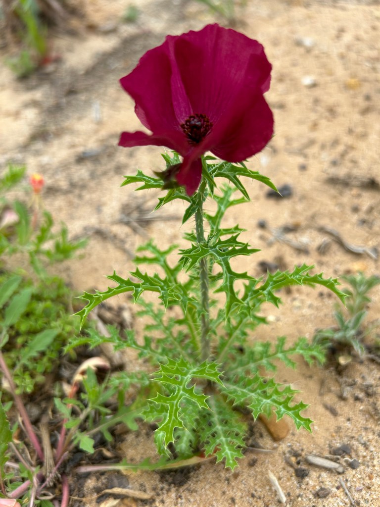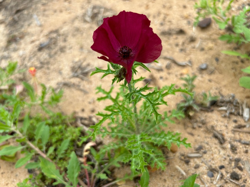 I had seen white Pricklypoppies before, which are the most common in this area, but never the red — those are more often seen along the Rio Grande. This one is a welcome guest.
