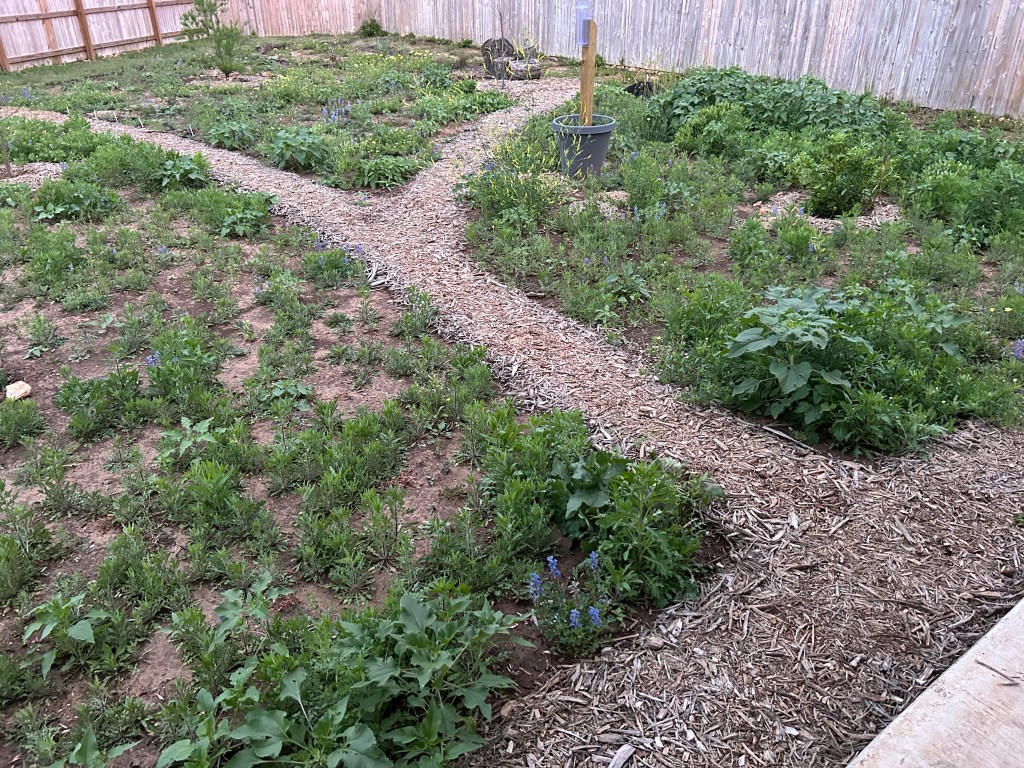 Last year the land here was rather barren because it was a new development lot with nothing but builder-installed turf and landscape plants that were mostly not nature-friendly. As I was in the process of clearing, planting, and planning, I was thrilled to see volunteer sunflowers arrive and really cheer things up.