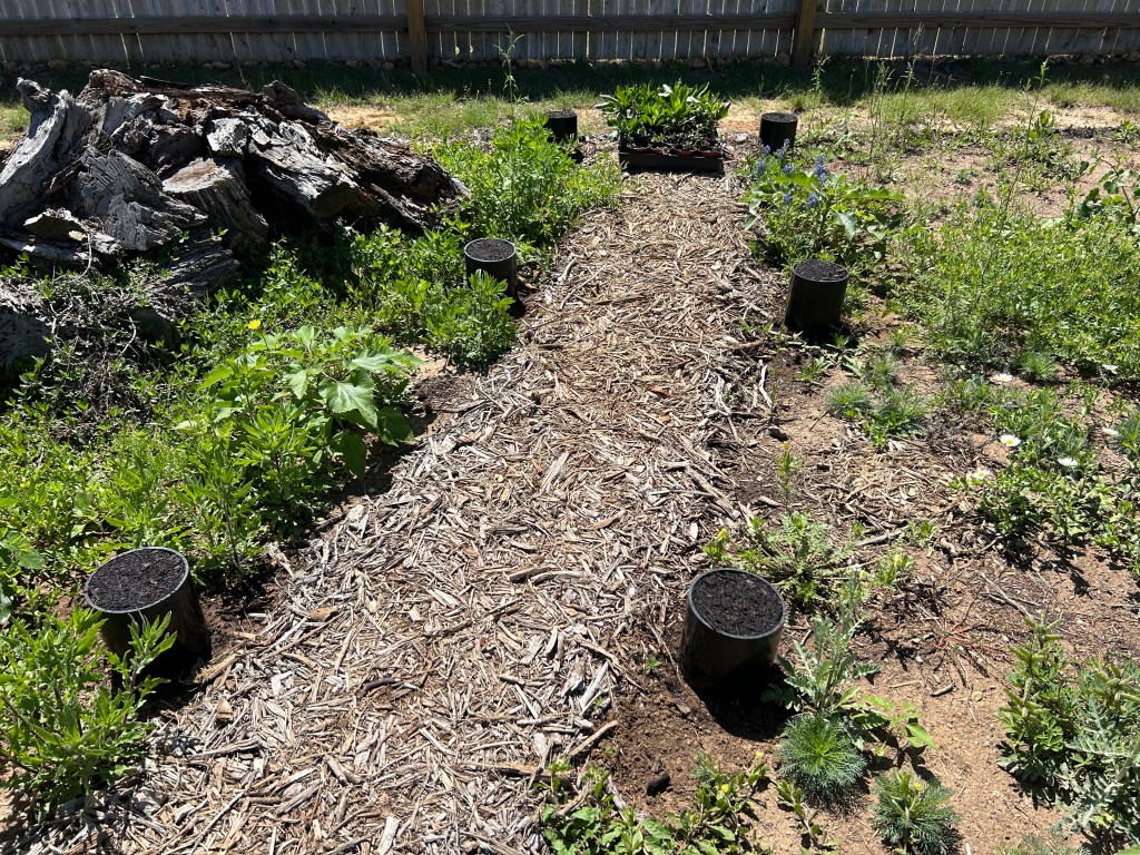 With the help of a friend with a saw, I cut 6-inch diameter drainage pipe into 8-inch sections and pushed them into the ground to make tiny raised beds.