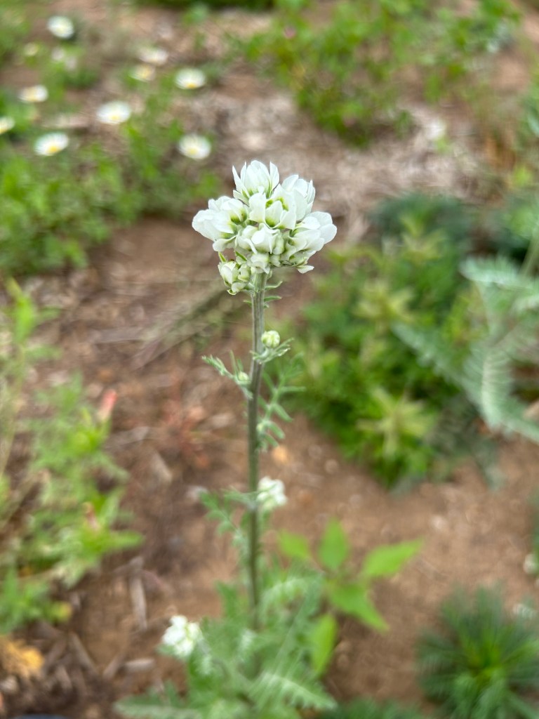 This has volunteered in both front and back gardens. Apparently if I cut the plant back, there will be more blooms later in the year.