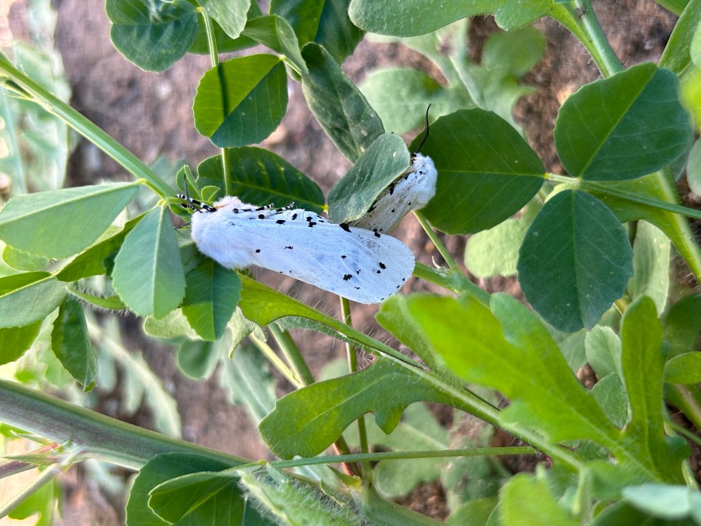 A few weeks ago I posted about a pair of mating Salt Marsh Moths that were in the garden, so to find youngsters here is hardly a surprise. Here’s a photo of those adults.