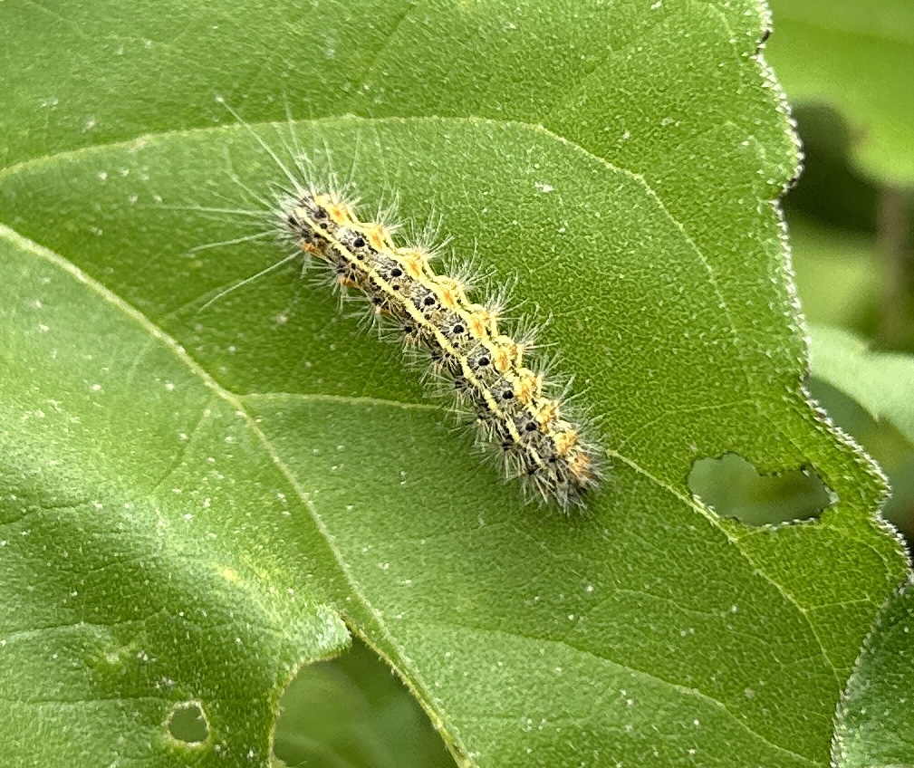 I find it fascinating that the coloration of caterpillars often bears no resemblance to the the appearance of the adult moth or butterfly. The designs are intricate, but sometimes I don’t see the detail until I’ve managed to take a good photograph and then zoom in. Like here.