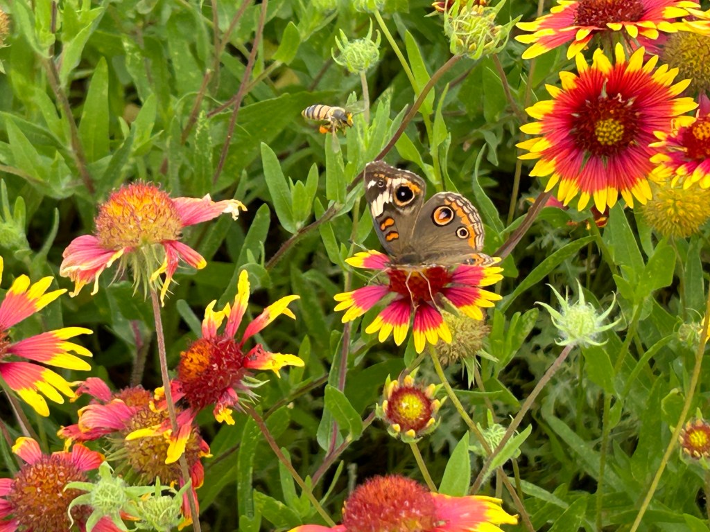 Here’s a Common Buckeye butterfly feeding on a Firewheel aka Indian Blanket (Gaillardia pulchella).