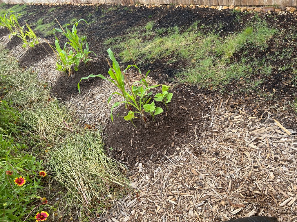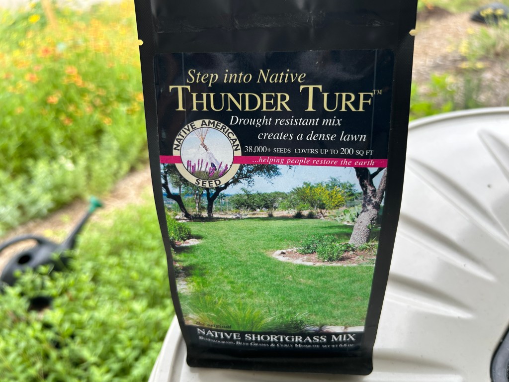 The seed I am using is Thunder Turf, which is made up of three different native grasses: Buffalograss, Blue Grama, and Curly Mesquite. I believe that I do have all three kinds growing now, and they have been seeding and putting out runners. However, the coverage of these grasses in the area I have defined is still not yet 100%. I knew that I would need to do some reseeding, but I had to wait until the soil warmed up.
