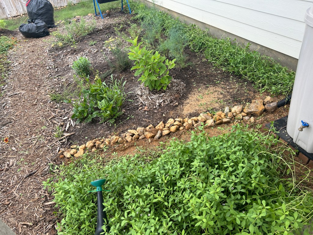 I usually time Frogfruit trimming sessions to be just after a rain so that the ground is soft and moist. There is so much excess Frogfruit now that I can selectively choose pieces of stem that have already self-rooted. It is then very quick and straightforward to cut a shallow groove in the new location to bury the roots, push them in, and water them. To be honest, I don’t really give them much attention after that. If a few pieces don’t establish, that’s not a problem since I am able to plant so many.