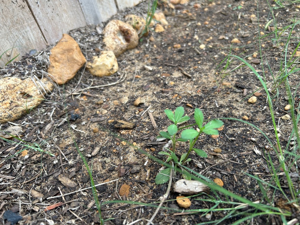 I am also inserting Frogfruit pieces near my south-facing fence behind the house where I am growing short native grasses. It is possible that the grasses won’t like the shade close to the fence, so I’m introducing Frogfruit there to give choices to the ground and I’ll let the grasses and Frogfruit sort themselves out.