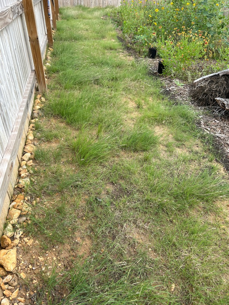 I don’t have complete coverage yet of my perimeter area of short native grasses (Thunder Turf), but there is a significant amount of grass there, nevertheless. These native grasses were chosen because of their deep roots, drought tolerance, support of wildlife, and minimal care. For instance, the mowing schedule is twice a YEAR!