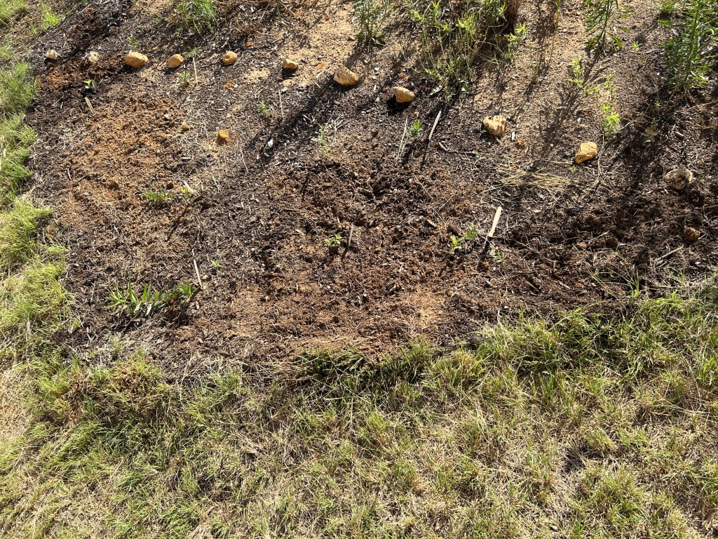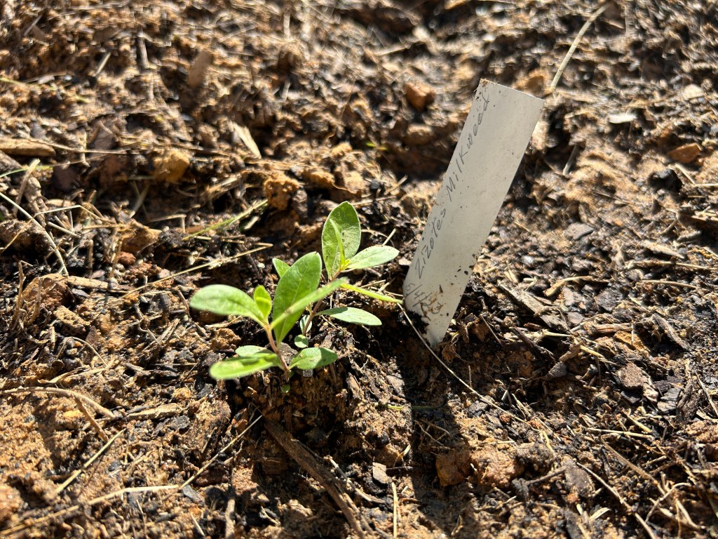 At this month’s meeting of the Native Plant Society of Texas, I took the unexpected opportunity to snag a couple of Zizotes Milkweed seedlings to add to my milkweed area. I thought it might be helpful for me to have some identifiable Zizotes plants with which to compare seedlings that grow. To make room, I cleared out some of the nearby native grasses that had wandered into the area. And now I have some known Zizotes plants, I think I can recognize a few of my earlier seedlings as being the same thing.