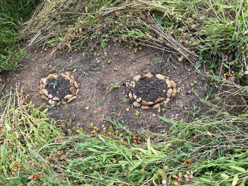 Here’s how the ground looks after the plants have been cut down. There are at least four stem clusters in this picture.