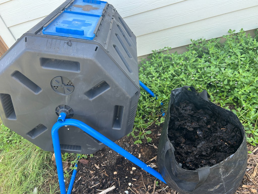 In October 2023 I wrote about how the first few months of composting had not gone well. I use a small dual-chamber tumbling composter, and my first loads had merely dried out without evidence of decay or reduction in volume.