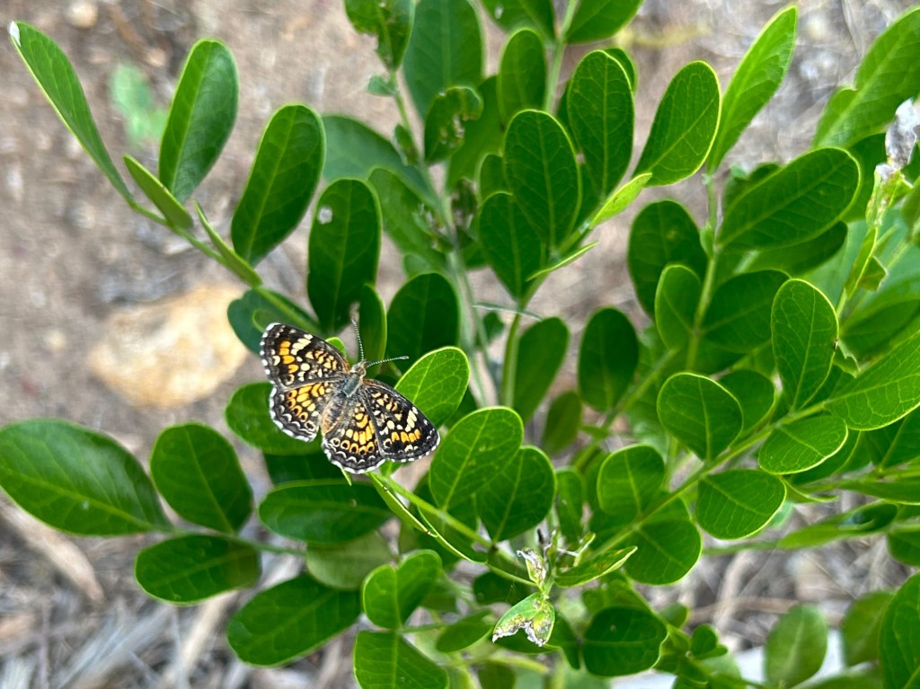 This butterfly also visits other nearby plants, although in this case on the Texas Mountain Laurel there is currently no nectar to eat so it’s probably just resting.