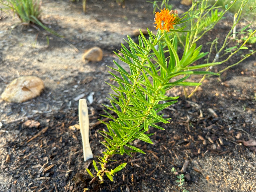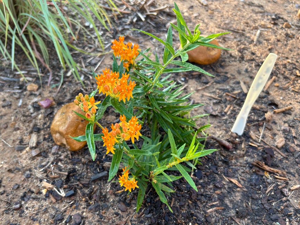 In April 2024 I was lucky to snag three small Butterflyweed (Asclepias tuberosa) plants at a Home Depot giveaway. I planted them in a small area of the garden that I have designated for native milkweeds. In that area I also have Antelope Horns (Asclepias asperula) and Zizotes (Asclepias oenotheroides) milkweed plants.