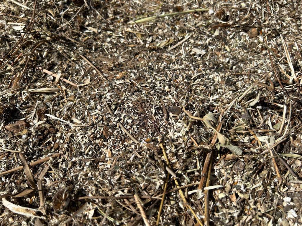 Over the period of a few days, I added more organic material to this area. First went down the product of a shredder session. Most of the plants in that batch were sunflowers and I realize that there is a high likelihood of transferring sunflower seeds to the tall grass area, but that is a price I am willing to pay and I’ll just remove unwanted plants later.