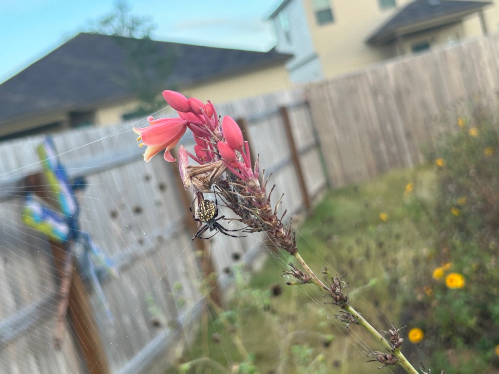 The spider spends most of its time hanging out on the Red Yucca. I’ve never actually seen it on the web.