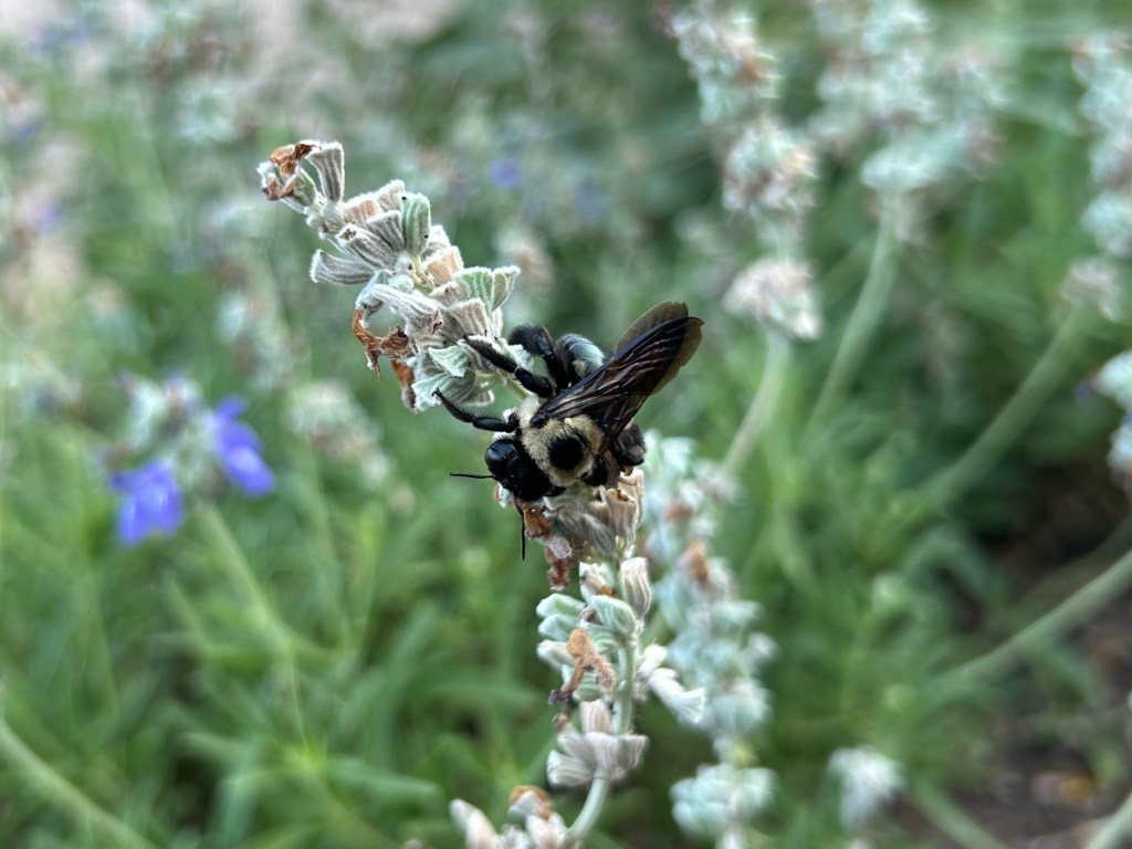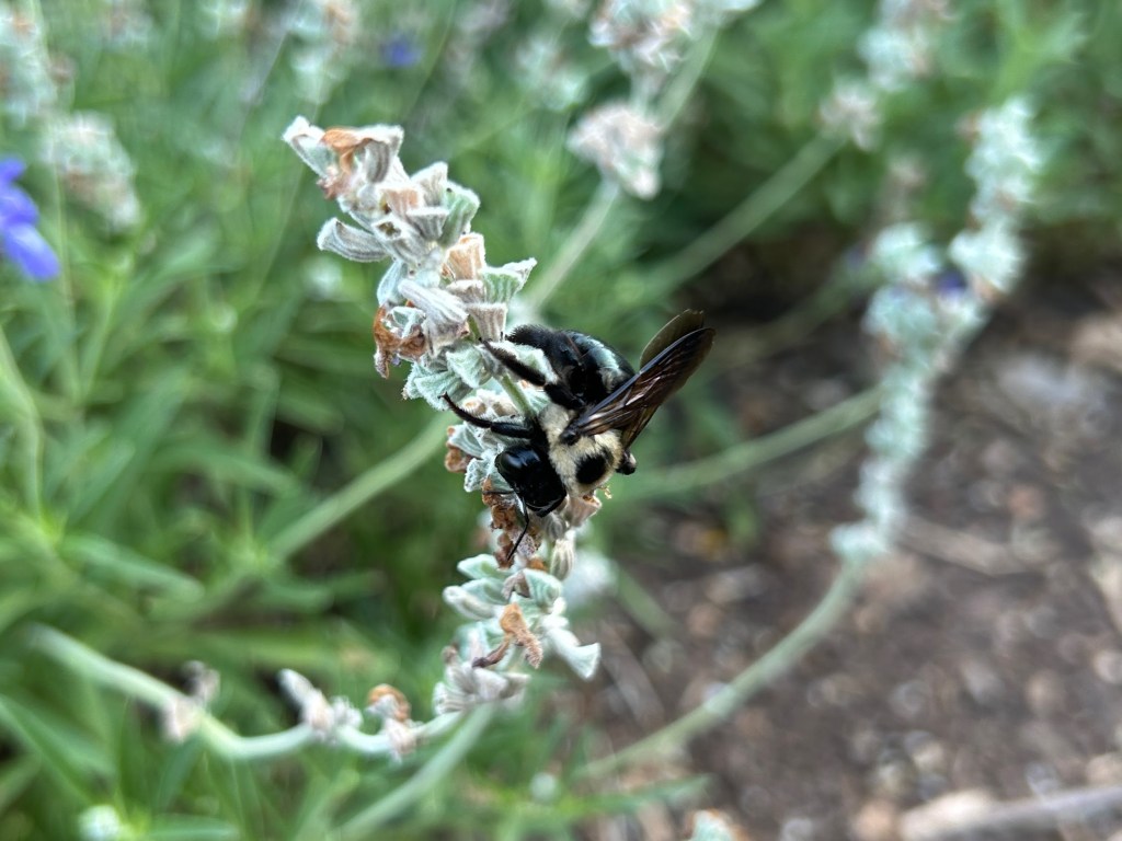 This garden attracts a lot of bees of different types and sizes. Most of our native bees in Texas are solitary and one of the most delightful things to see in the early morning are bees that are still sleeping on plants.