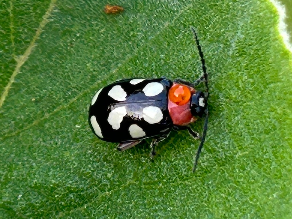 There are not too many bugs I think I’d label as “cute.” This one…. the Eight Spotted Flea Beetle Just might fall into that category. I’m puzzled, however. why it’s called the Eight Spotted Fle… oh wait… never mind.