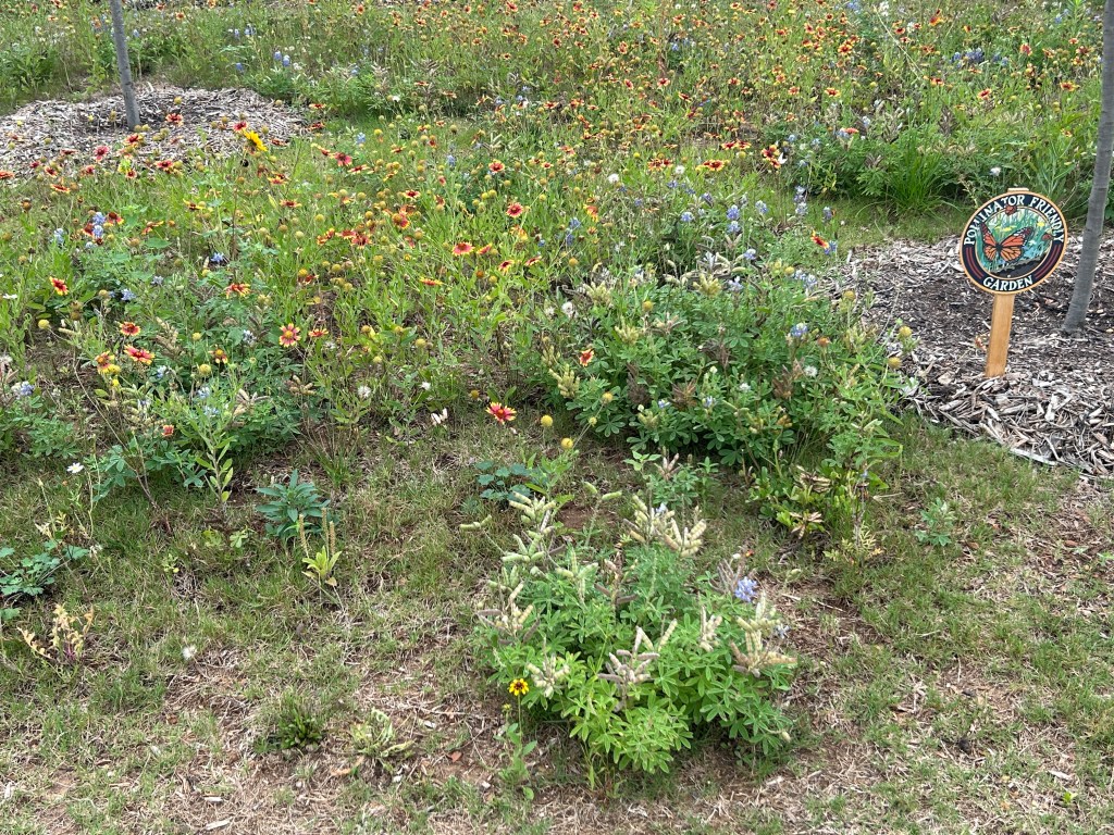 By mid-October, the only things still standing in the wildflower meadow were a few Spotted Beebalms aka Spotted Horsemint (Monarda punctata) and Beach Sunflowers (Helianthus debilis), one Silverleaf Nightshade (Solanum elaeagnifolium), and one Yellow Sneezeweed (Helenium amarum).