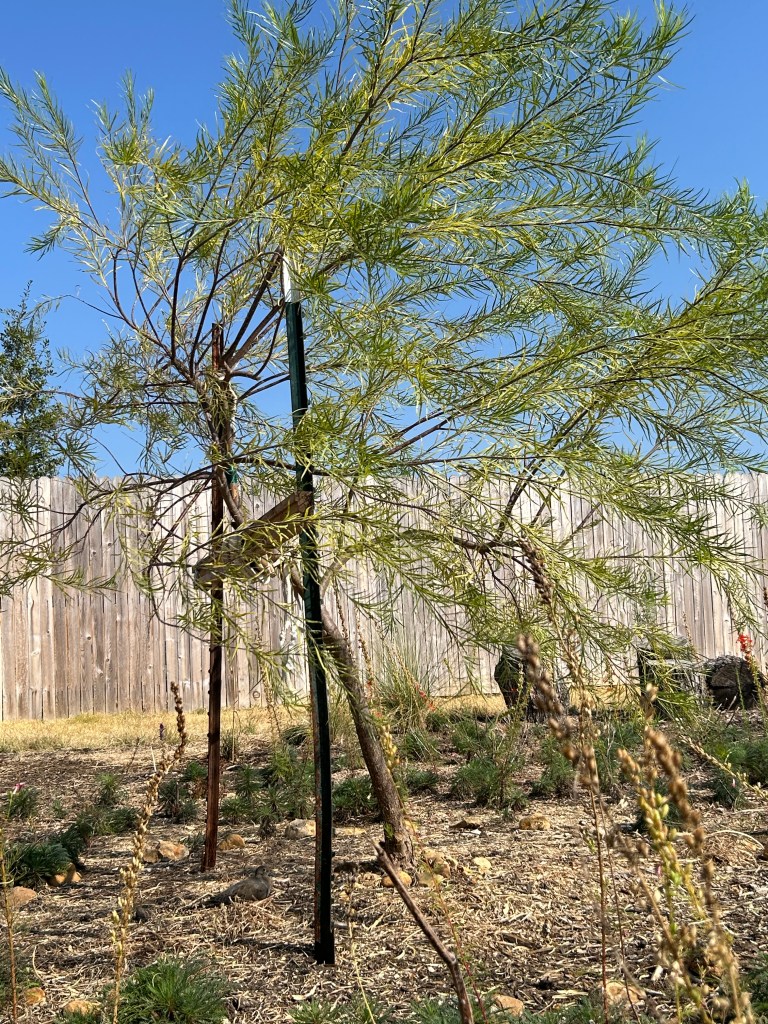 One day I found a dove just sitting on the ground. I don’t believe it was injured because it would periodically get up and walk around and later it flew away. The resting behavior was unusual so it caught my eye, especially since it wasn’t in shade. These photos were taken when it was underneath the Desert Willow tree (which is currently being propped up until it can get a stronger footing).