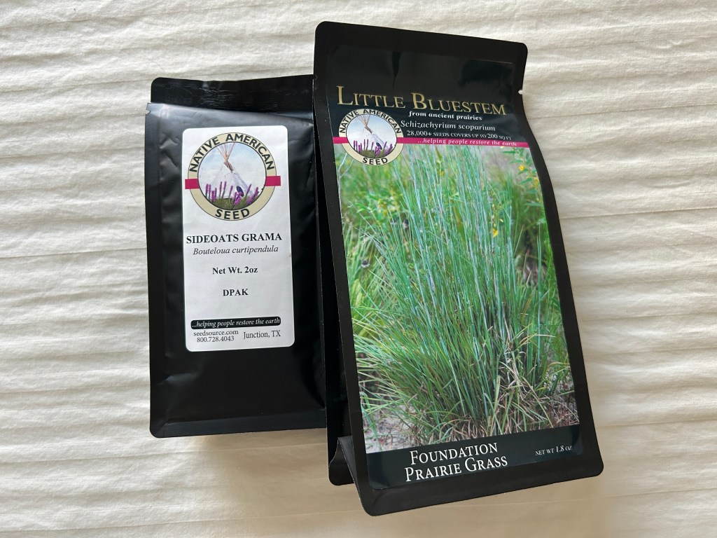 I had one pack each of Little Bluestem and Sideoats Grama, purchased from Native American Seed.
