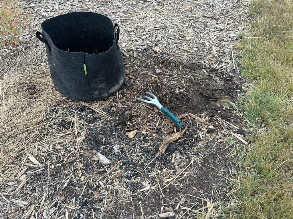 The woodchip was repurposed to expand tree circles. Any remaining material was simply added to the top of another pathway in the garden.