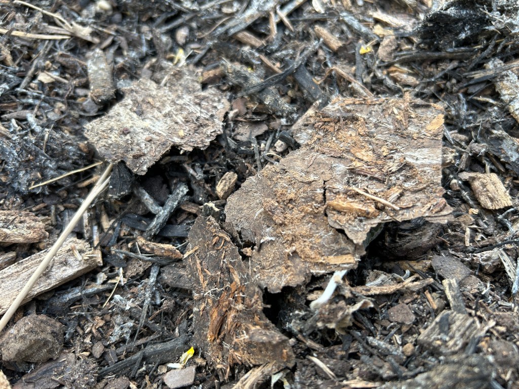 Since I do not plan to repeat the Three Sisters, that portion of the pathway could be removed to make way for other plants. This also offered an opportunity to see how the original woodchip had degraded in the year it was on the ground.