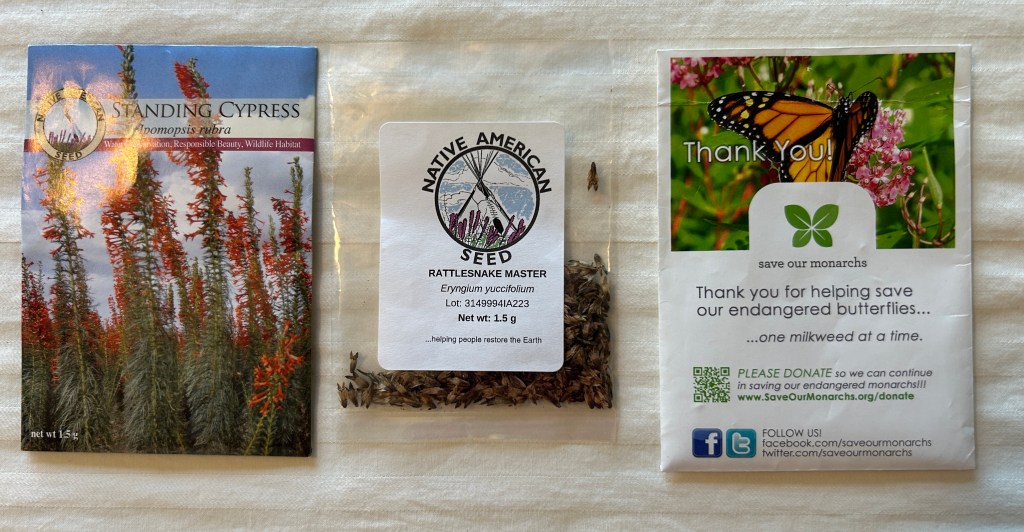 As well as Standing Cypress, I also added a few more seeds for Rattlesnake Master (Eryngium yuccifolium) and Butterflyweed (Asclepias tuberosa).
