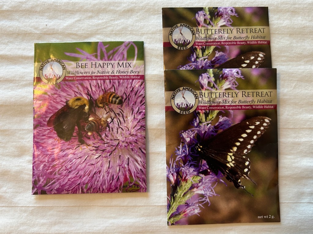 The seeds I used were small packs of two different assortments from Native American Seed (Bee Happy Mix and Butterfly Retreat). Theoretically, these seeds could include the list below, although I don’t expect everything to grow. The garden can decide what works well in this environment, and I will have my work cut out for me in the spring to try to identify what’s growing in order to eliminate weeds and/or move things to a better location.