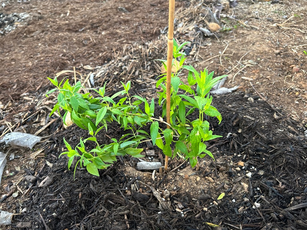 Flame Acanthus (Anisacanthus quadrifidus var. wrightii) – between the Mexican Olive tree and the woodpile – upright spreading shrub with orange flowers. This will be a companion to the more common red flowered version, which is near the rain gauge. These plants are popular with hummingbirds, and are also host plants for Janais Patch and Texas Crescentspot butterflies.