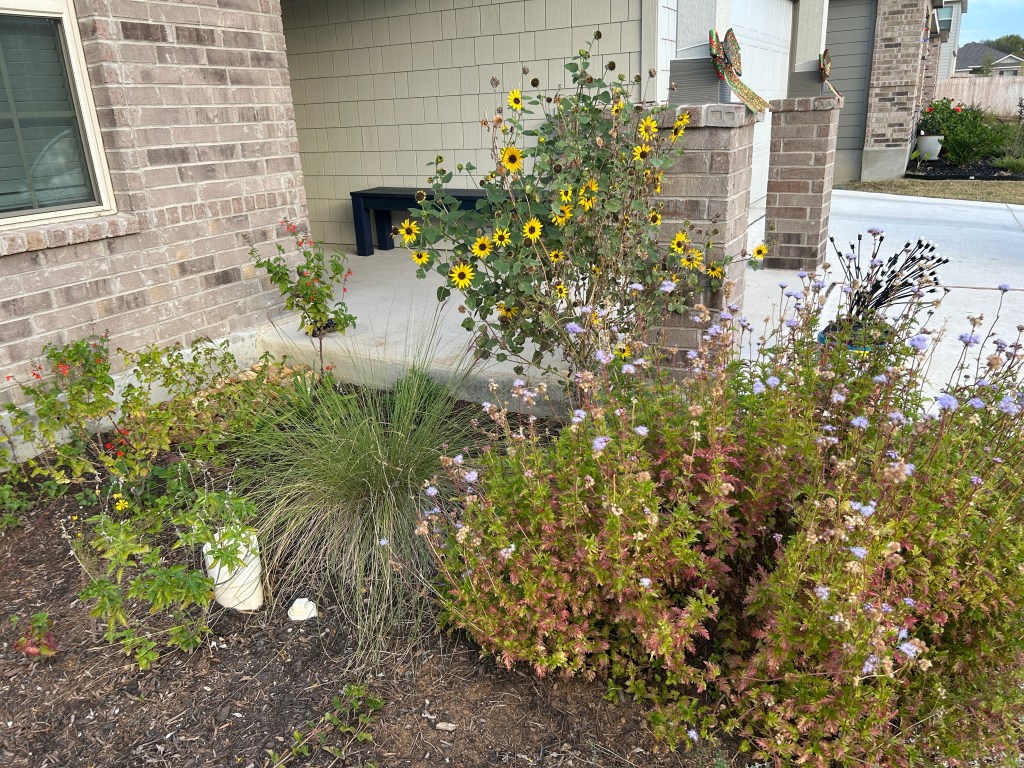 We moved to Seguin, TX in February 2023, and that’s when I started the multi-year process of transforming our bare builder’s lot into a nature garden with priority given to native or adapted plants. We are in Plant Hardiness Zone 9a and our soil (below the builder rubble) is sandy, being part of the Post Oak Savannah ecosystem.