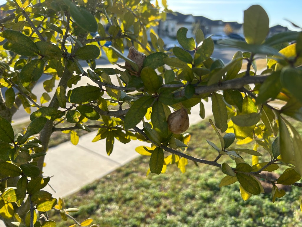 There are at least two of these cocoon-type structures on the Mexican Plum tree and one on a Live Oak tree. They appeared weeks ago, and so I think they will stay that way through the winter.