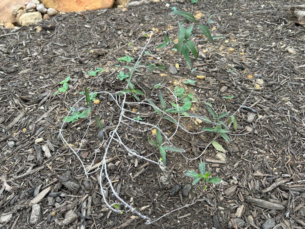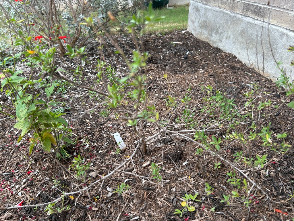 The first Turk’s Cap that I planted here failed to survive my inexperience, a re-transplant because I regretted where I first put it, and a brutally hot and dry first summer. This is a new specimen that was planted in the fall of 2024 and I hope this one will be happier.