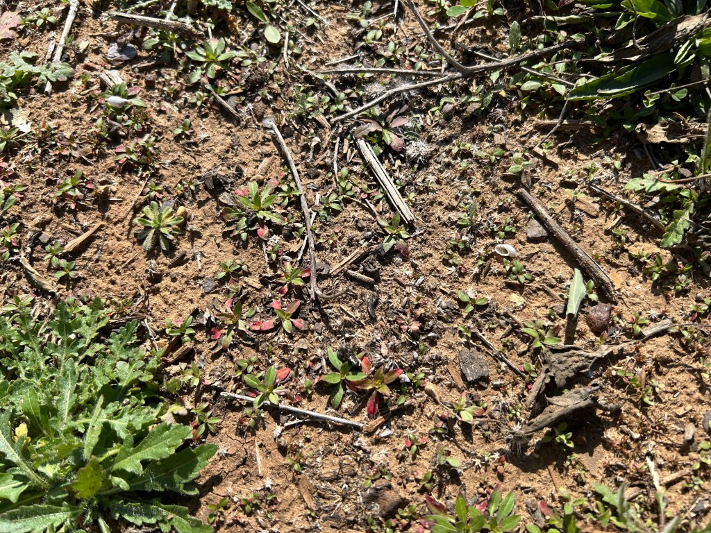 Even what look like bare patches from a distance have tiny new things growing.