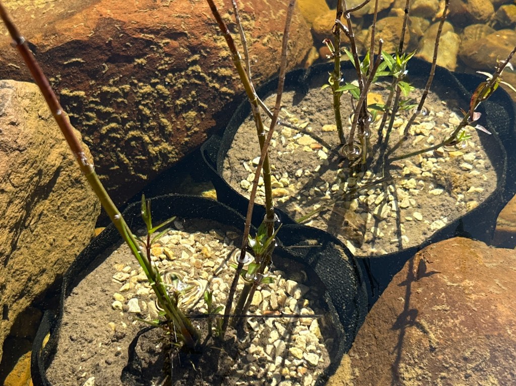Aquatic Milkweed (Asclepias perennis). I have no idea what to expect with this plant, being new to aquatic plants in general and being unaware that this even existed until I bought it last year. But it survived the winter and has put out some new leaves.