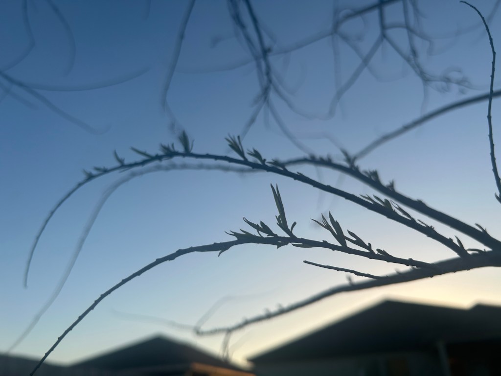 Desert Willow (Chilopsis linearis). This is the tallest and fastest growing of the trees I have planted here. New leaves are appearing on every branch.