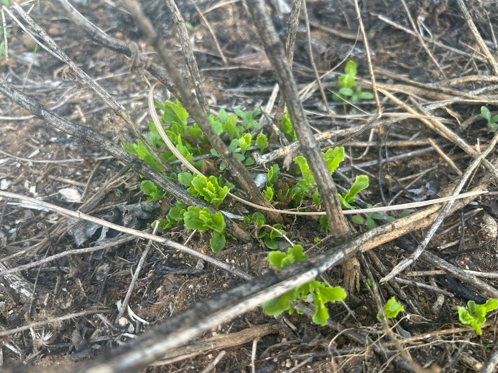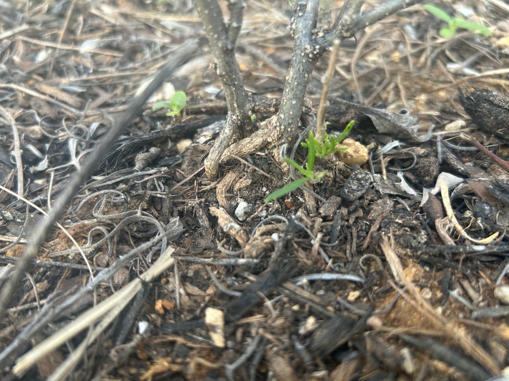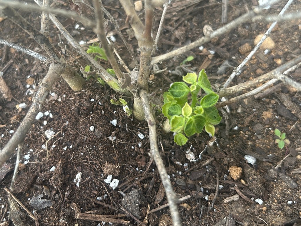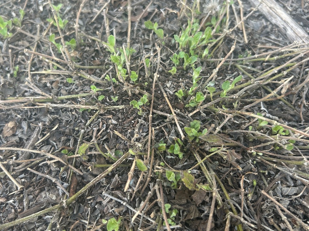 Texas Lantana (Lantana urticoides). I gave this shrub a particularly severe pruning over the winter, because it was only spreading along the ground and not growing taller. I see some new growth, so I didn’t kill it!