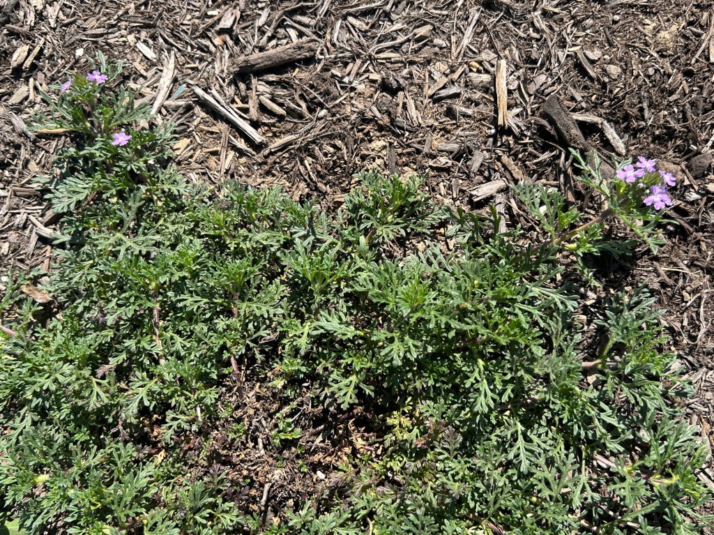 Prairie Verbena (Verbena bipinnatifida). Of the three of these planted near the pond last November, one is growing particularly well and is even flowering.
