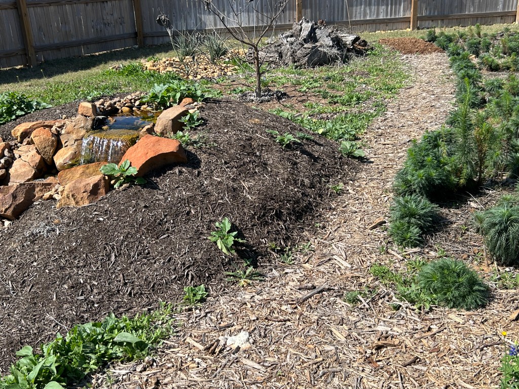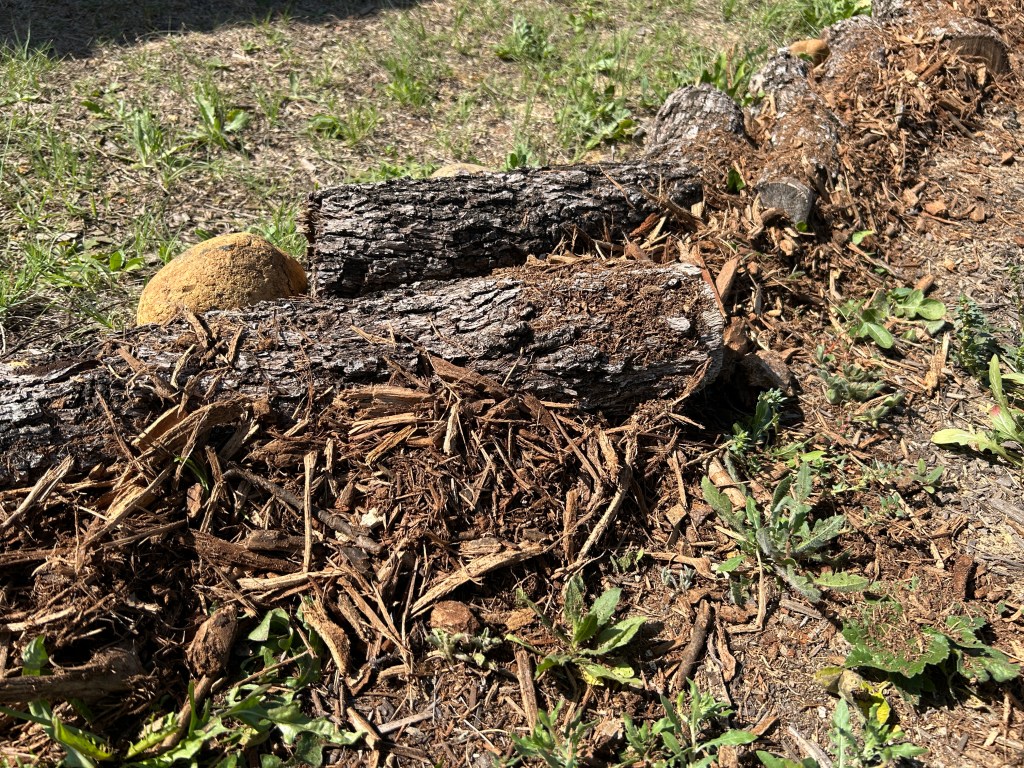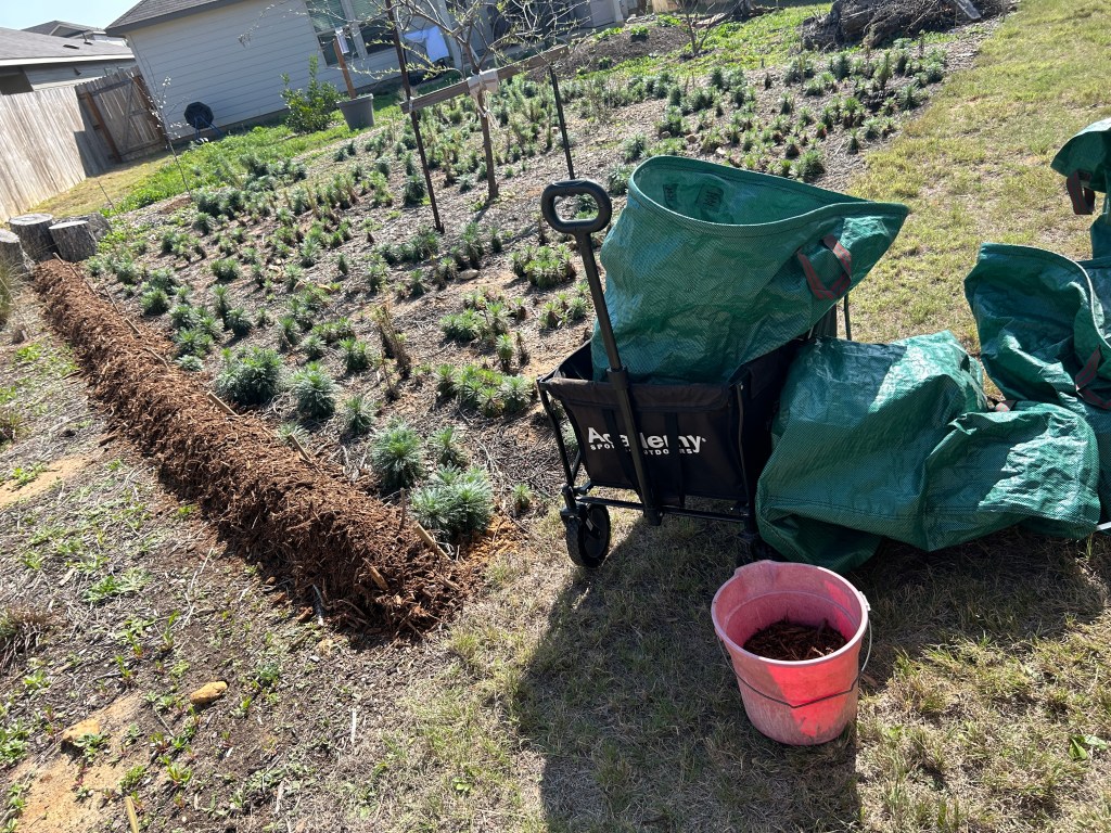 On top of that I put a layer of woodchip (offered free by the city of Seguin). I expect this berm to settle over time, but adding more woodchip can easily be done.